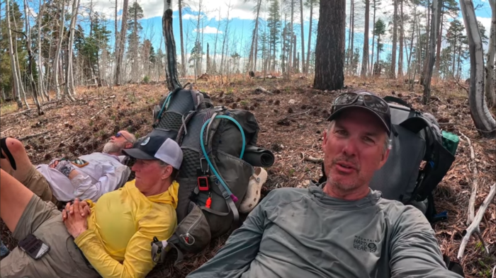 Our afternoon was much easier, walking over wooded terrain on very old access road/trails. The trail was very reminiscent of our afternoon after conquering the Mogollon Rim. We passed electrical boxes which resembled green plastic coffins. I joked that they housed the North Rim Vampires who come out at night. But all of us were tapped out from the climb, and found ourselves resting often throughout the afternoon. Being close to the end and having left behind the last major obstacle, we felt much less urgency.