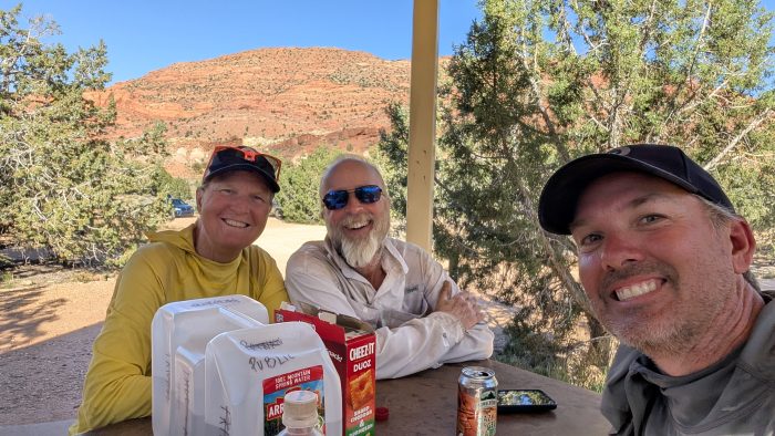 The campground was well appointed, except for water. Sun shelters over well built picnic tables at every campsite, excellent privies, and a very friendly atmosphere. The place was PACKED with people, which was a surprise because we imagined a rustic barely frontcountry camp far from civilization and realized this was a popular staging ground for people to visit the Grand Staircase National Monument, the “Wave”, and other beautiful natural wonders. Thankfully, another thru-hiker named “Lightfoot” (from Norway, she’s an incredibly experienced hiker!) had secured a site and welcomed us to her space. I hung out with my friends, reminiscing about the trail and our experiences until 7pm when my ride showed up to whisk me off to an in-law suite to clean up and prepare for my journey home.