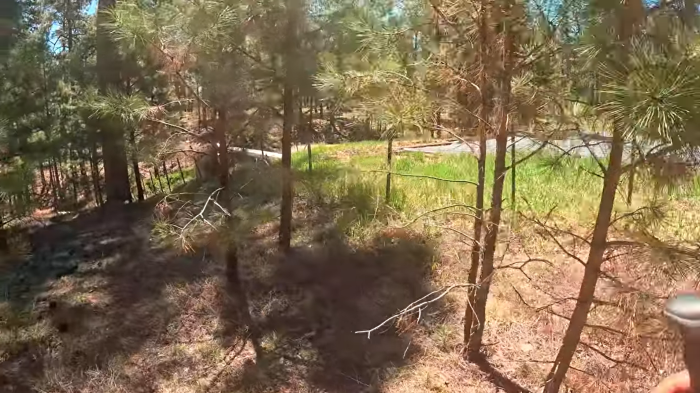Another windy start but sunny, we proceeded into the burn. We were surprised to observe an especially large gust of wind rip the top off a dead pine and drop it on the trail about 200 yards from us. This caused us to hurry as fast as we could through the deadheads. The trail dropped down onto a flatter area and wound along the eastern edge of a very large open glade. The trees became smaller once again, drying out as we approached Utah. I attempted to contact my trail angel pickup, to update her on my new itinerary, just letting her know she could arrive early on Day 50 if she wanted to since we would already be at the campsite. But reception was spotty and it was not until late in the day we were able to communicate. Much to my surprise she offered to come out this evening!